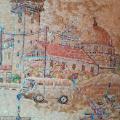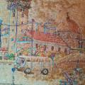 Pencil falls artworks. Al-Jisr Al-Abyad Mosque, an ancient mosque in Damascus. Size(70×100)cm Was done in 2000