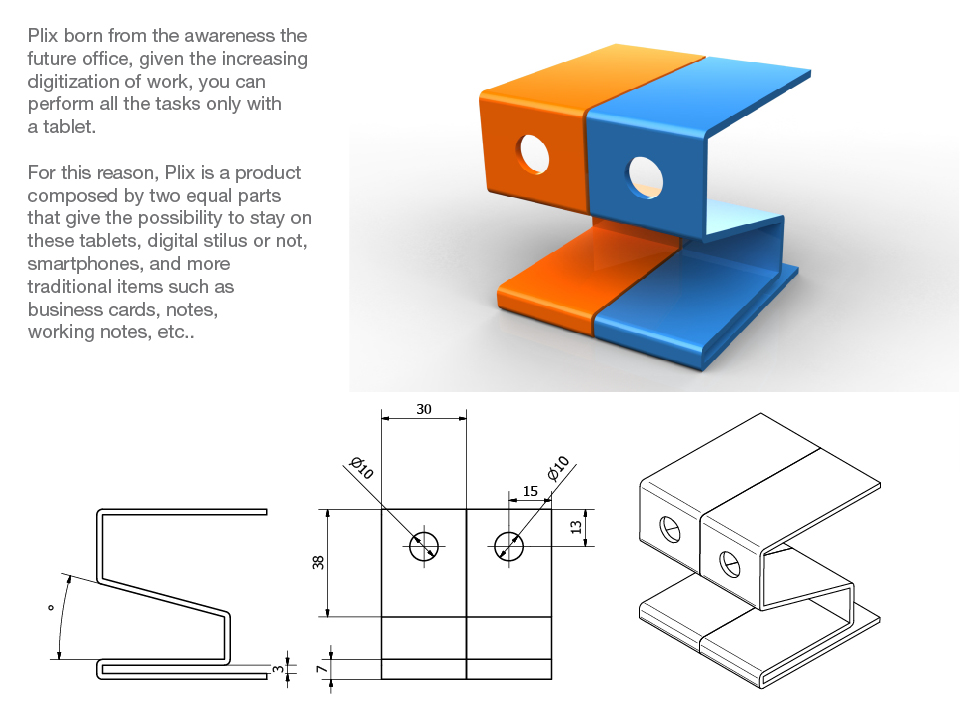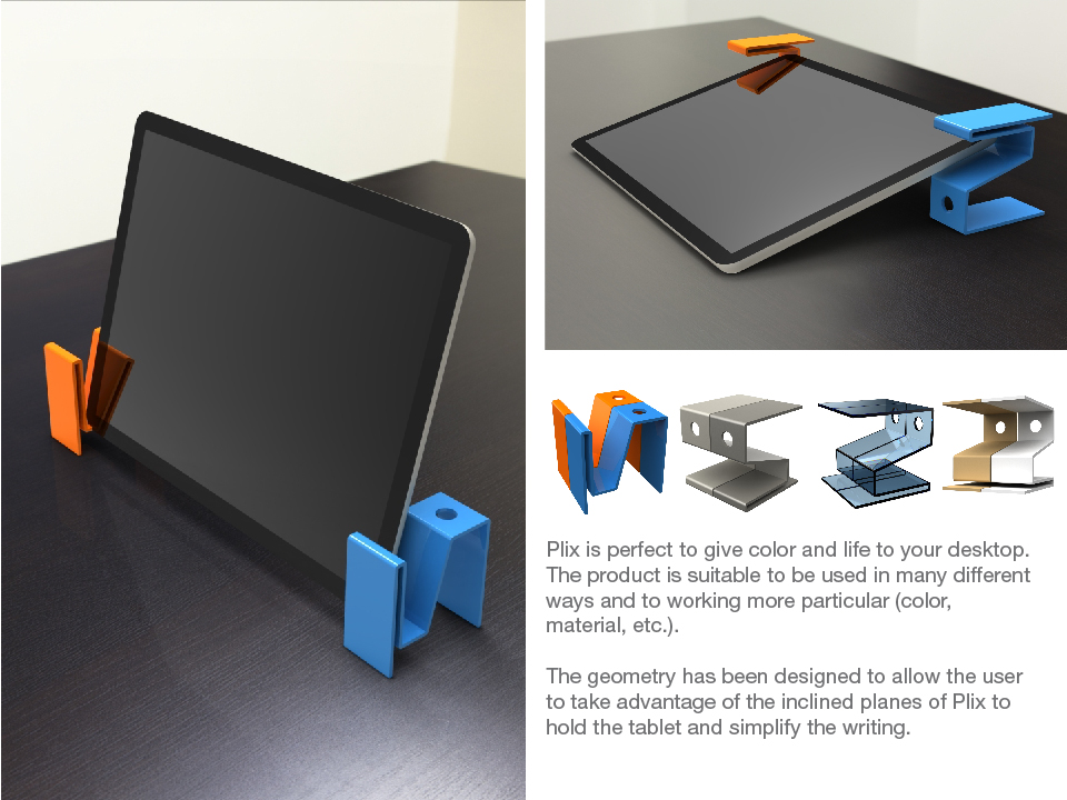 For this reason, Plix is a product composed by two equal parts that give the possibility to stay on these tablets, digital stilus or not, smartphones, and more traditional items such as business cards, notes, working notes, etc.- Description