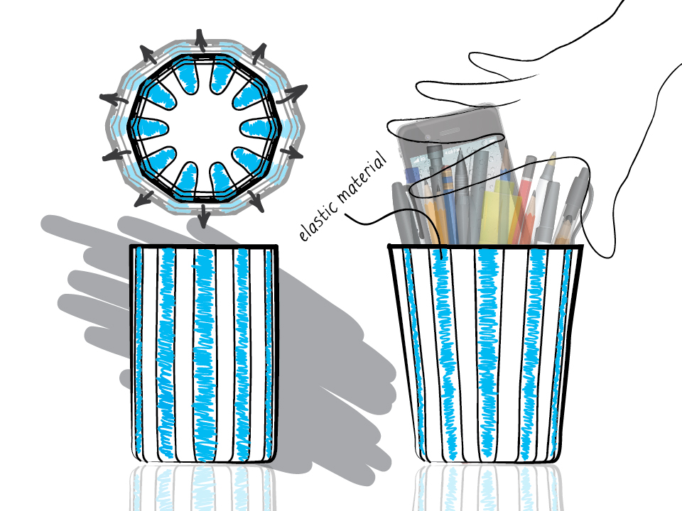 How many times has it happened to want to put into a pen holder the many items scattered on your desk and find that it can contain only a part?