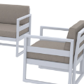 Lounge set designed for easy self assembly, it is made of durable weather-resistant resin reinforced with glass fiber.