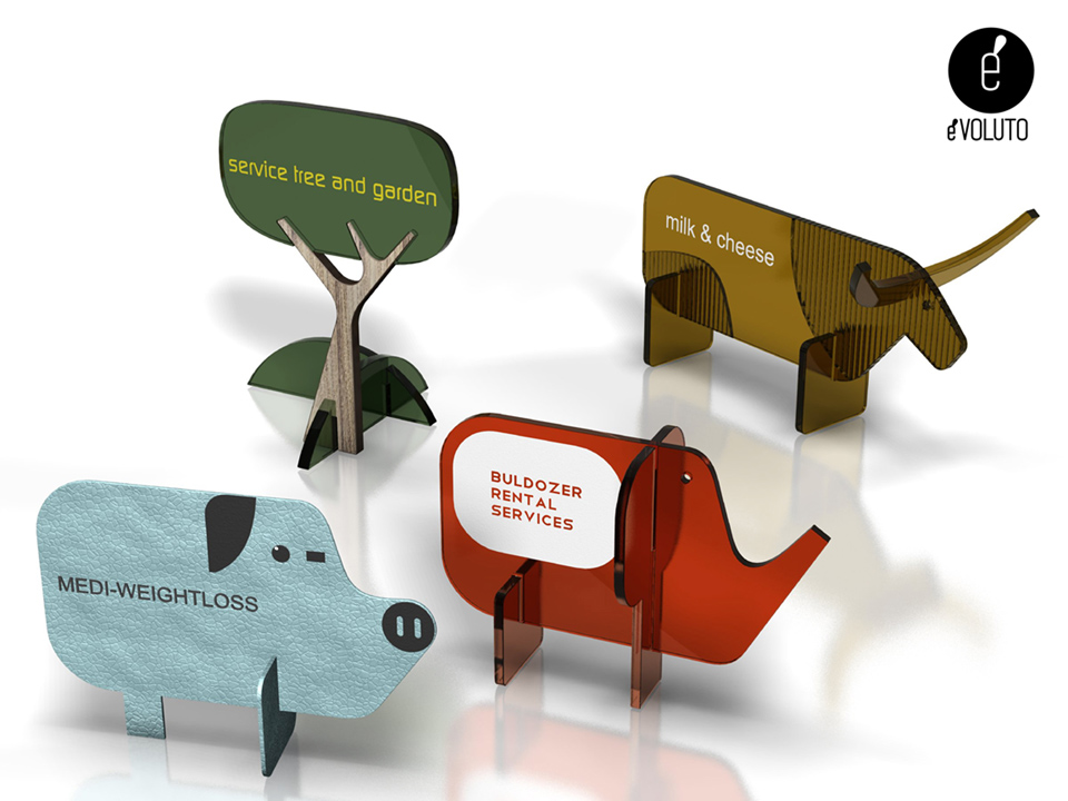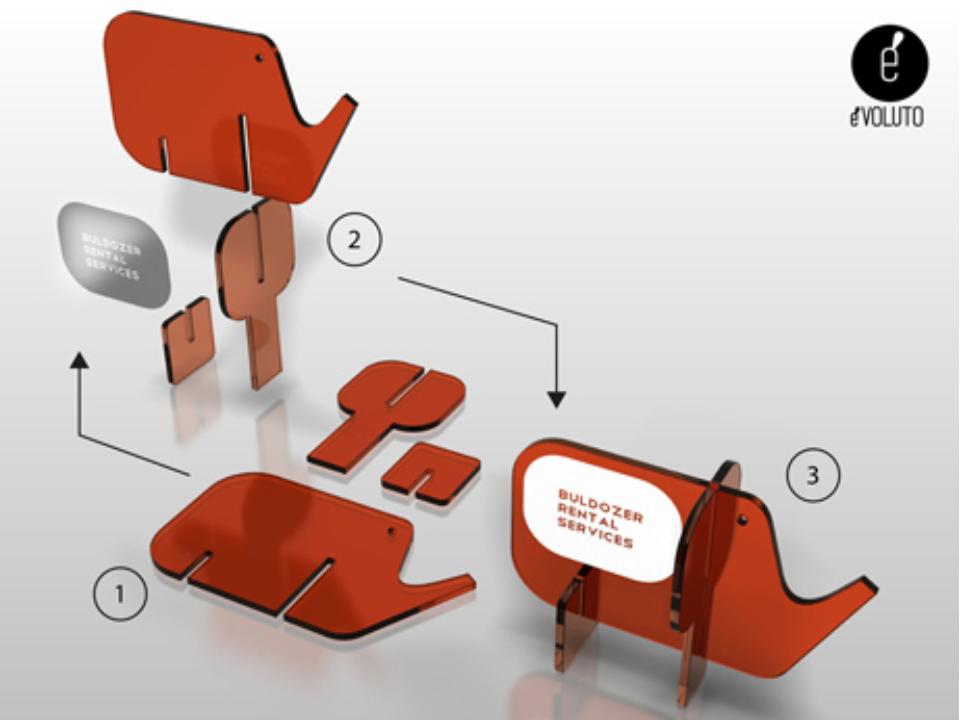 easy to assembly. To make it standing. A small text can be added by engraving the material or with an adesive patch. The result is sort of small vertical display or personal card o whatever else that could be attractive and have a text.