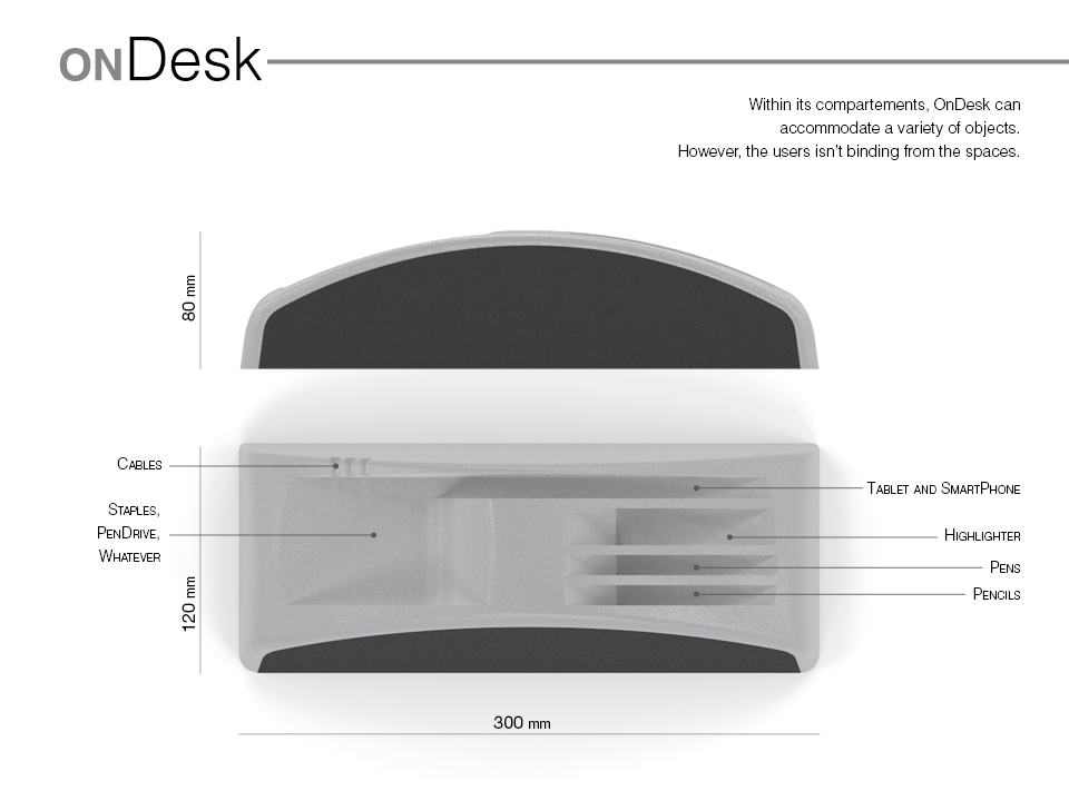 OnDesk is designed to accommodate in its compartements most of the items that we may need in the workplace or simply that we need to keep under one’s eyes.