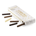 It is propose a set of chocolate checkers. Their shape may be different from standard round. Sizes can be small or large. Wrapper-chessboard
