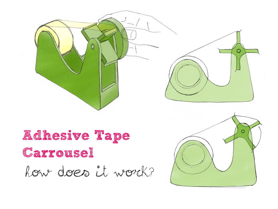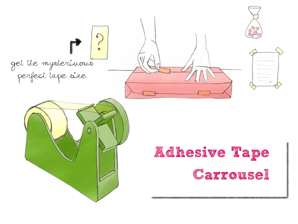 This gadget has been designed to automatically cut small (perfectly sized) pieces of tape. It has been designed with the idea of wrapping presents or other such activities.