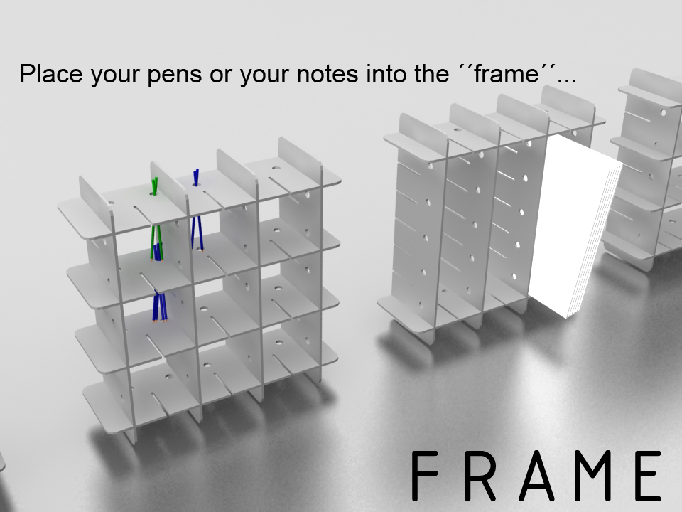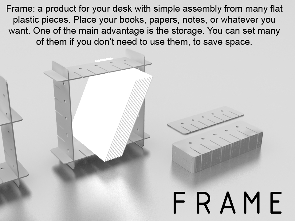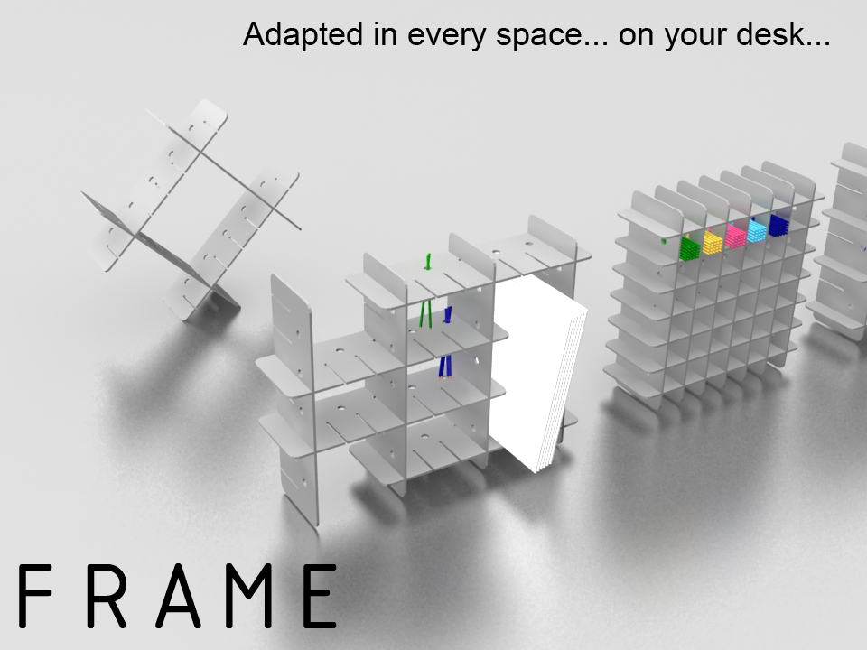 The “Frame” is a product for your desk or for your space with simple assembly from many flat plastic pieces.