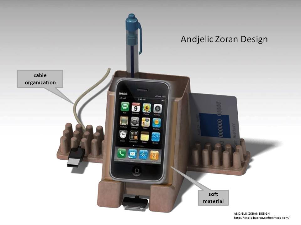 In today’s offices on our desks we have a lot of cables for connectors, chargers, USB, different data transfer, microphones, headphones etc. And we lose a lot of time searching for them and even lifting them from the floor. I wanted cables with correct side always on the desk so I designed multifunctional cable organizer, phone stand and pen cup, all in one. Next step would be build in USB hub but since I’m not in to electronic I want first see the feedback for this design.